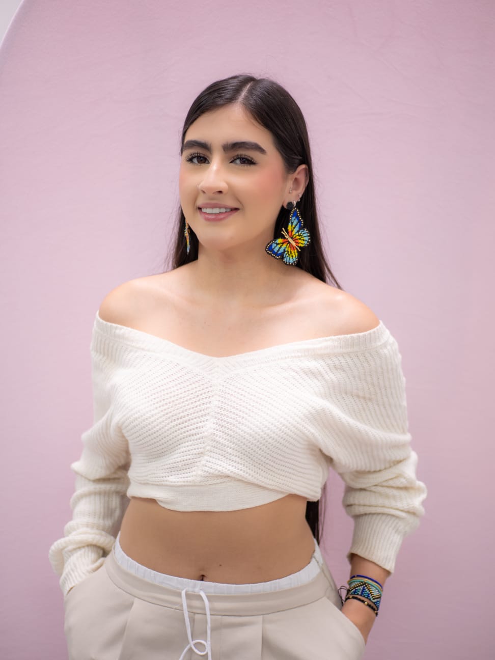 Las aretas que luce nuestra modelo son una muestra de nuestra colección: piezas elaboradas cuidadosamente en Miyuki, reconocidas por su precisión, brillo y calidad, así como diseños en mostacilla, perfectos para quienes aman lo artesanal y auténtico. Cada accesorio es único, pensado para realzar tu estilo y acompañarte en tu día a día.